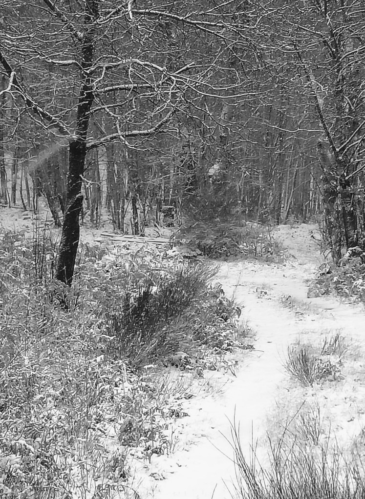 Out my window, Wolf Winter’s chilly breath sends snowflakes into flight